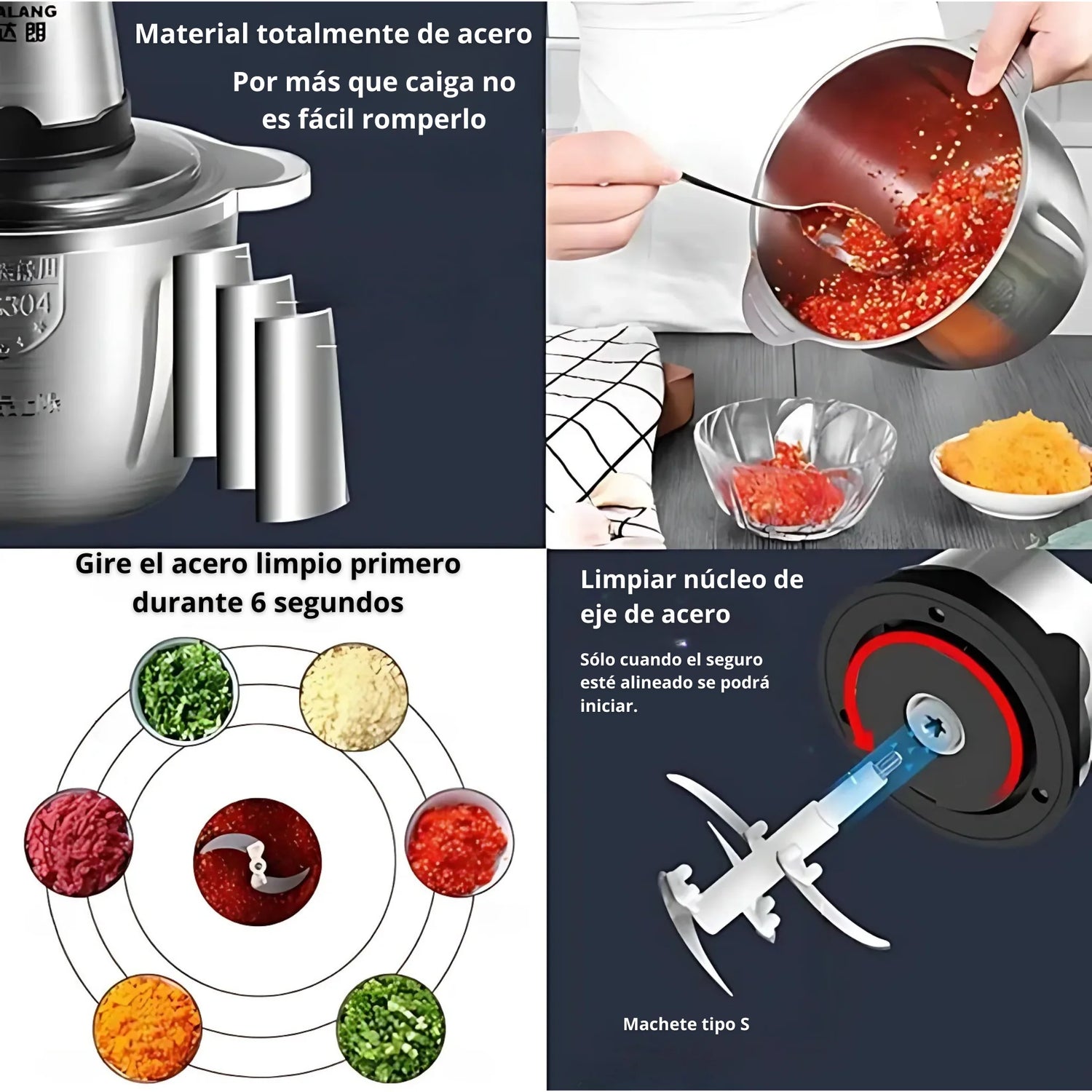 La Picadora Eléctrica Dos Velocidades resuelve tu problema con su alta potencia de 200W y su tecnología de corte de cuatro hojas.